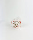 New: Our first pink cup! Now available in a Mama and Me Set. Mama (or Dada!) & Me sets are the best. Matching your favorite little with this brand new Helmsie original design will be fun for everyone in the family. Birds, bees, butterflies and florals perfectly placed on this Miller Rose pattern. The sippy cup has a removable clear top that can be set aside when it is time to transition to a toddler mug. We are very proud of this easy to clean melamine mug. Not only does it come in a pattern that mama will enjoy, the top is easy and fast to push onto the mug and stays sealed! We have tested this cup for over a year at home, and despite many dishwasher cycles, the cup's seal has stayed perfectly tight, no leaking except through the small drinking holes where liquid should come out.