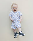 Lucky Panda Kids - Checkered Shorts Set | Blue
