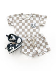 Lucky Panda Kids - Checkered Shorts Set | Latte