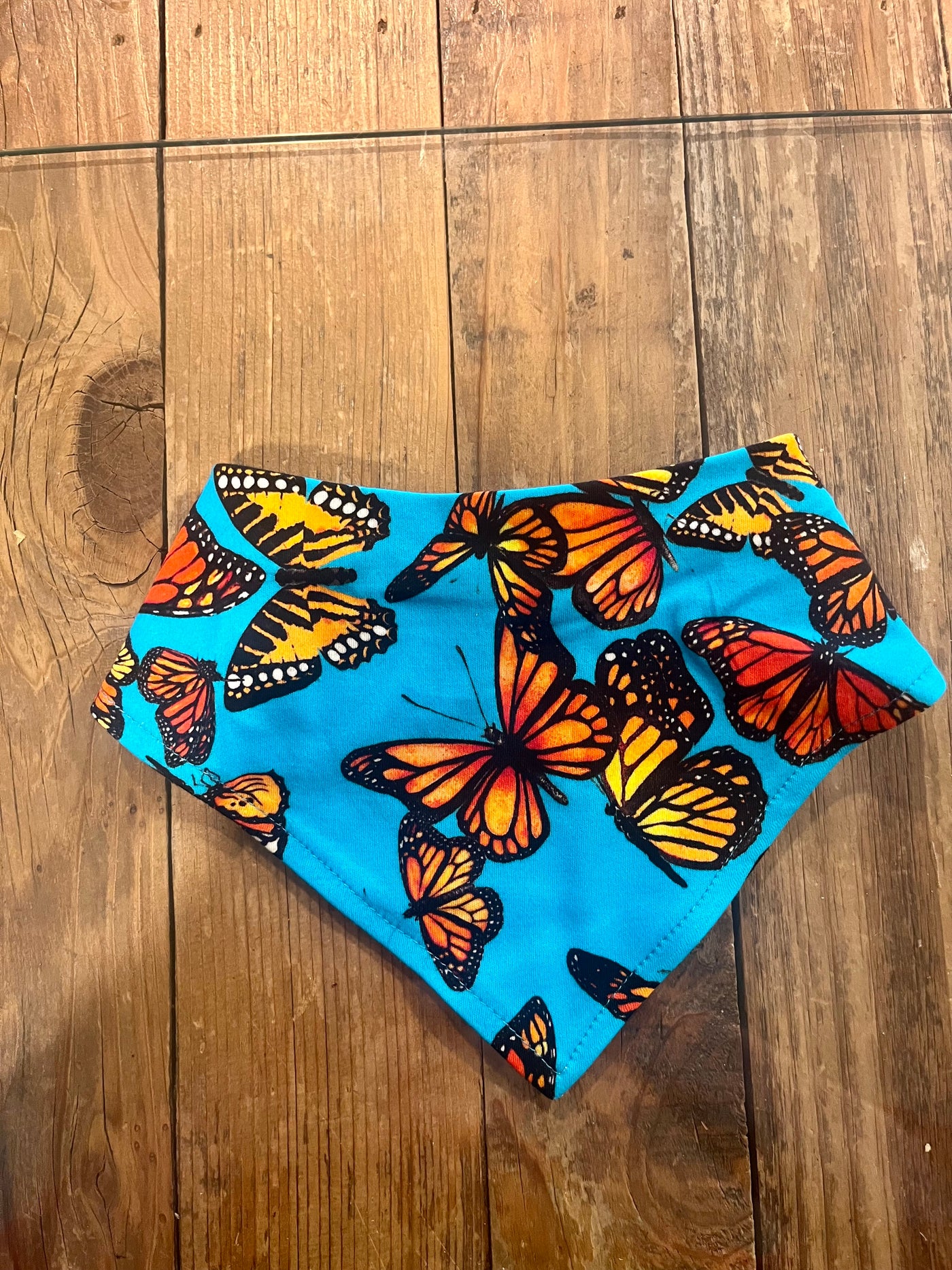 Supper in Style Our adorable handkerchief bibs are soft, absorbent, and stylish! Whether you're protecting your outfits from messes or using to wipe up little mouths, our bibs will be gentle on baby's skin while making mealtime memories. 24X16 inches Organic Cotton and Snap closures for ages 0-36 months